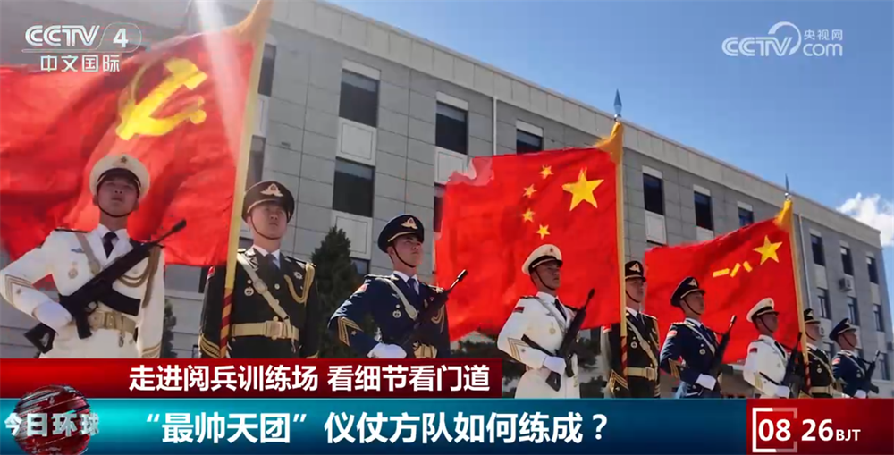 徒步方队中,仪仗方队第一个走过天安门广场接受检阅。仪仗方队的队员全部从中国人民解放军仪仗司礼大队抽组而成,作为中国排面、“最帅天团”,他们一出场就是万众瞩目的焦点。他们整齐划一的步伐是如何练就的呢?密码就是“75厘米”的步幅。正步步幅必须精确到75厘米,误差不能超过1厘米。只有分毫不差,才能达到“横看一条线,竖看一个人”。仪仗方队的三名旗手——王子赫、石斌、徐泽东,将高擎党旗、国旗、军旗通过天安门广场。他们都是“90后”,平均身高1米89,都曾经担负300起以上的仪仗司礼任务。