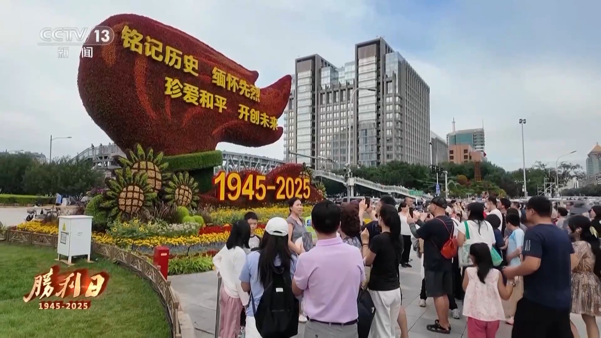 胜利日前夕的首都北京,从建国门到复兴门,长安街装点一新。沿途红旗猎猎,花坛浓墨重彩,多处巨型标语展示着新时代新征程的铿锵画卷。