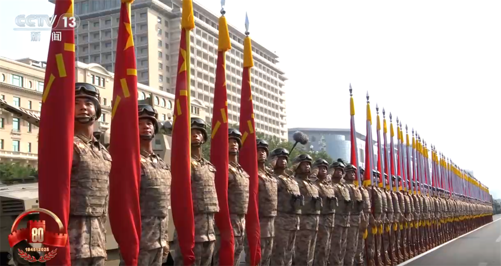 战旗方队,由25辆新型猛士突击车组成,车上搭载的荣誉战旗都是从八路军、新四军、东北抗联、华南游击队等授称命名单位中遴选,是我军在抗日战争时期艰苦卓绝战斗的缩影,承载着我军抗击日寇、抵御侵略的苦难辉煌。