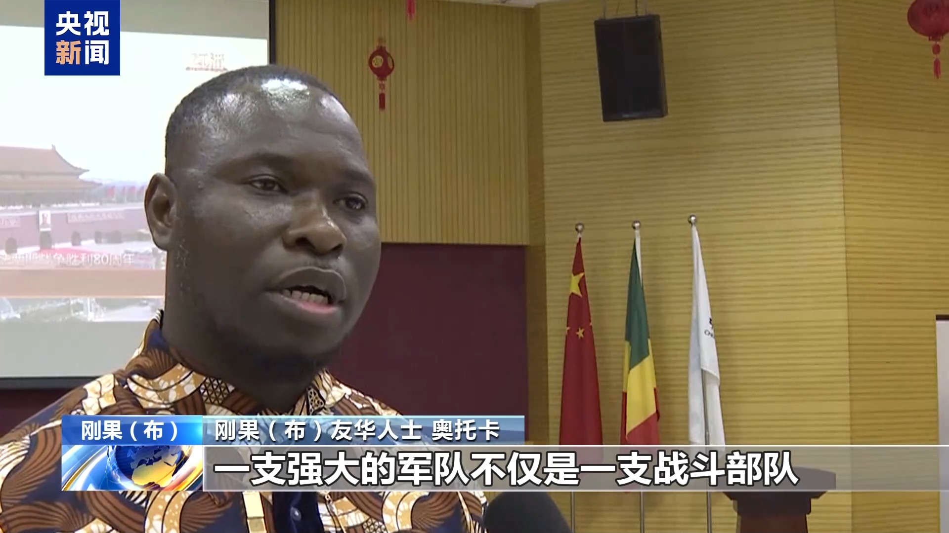 刚果(布)友华人士 奥托卡:我们刚刚观看了中国的阅兵式,中国军队的新型军事装备令人惊叹不已。一支强大的军队不仅是一支战斗部队,也是国家繁荣和稳定的重要支柱。