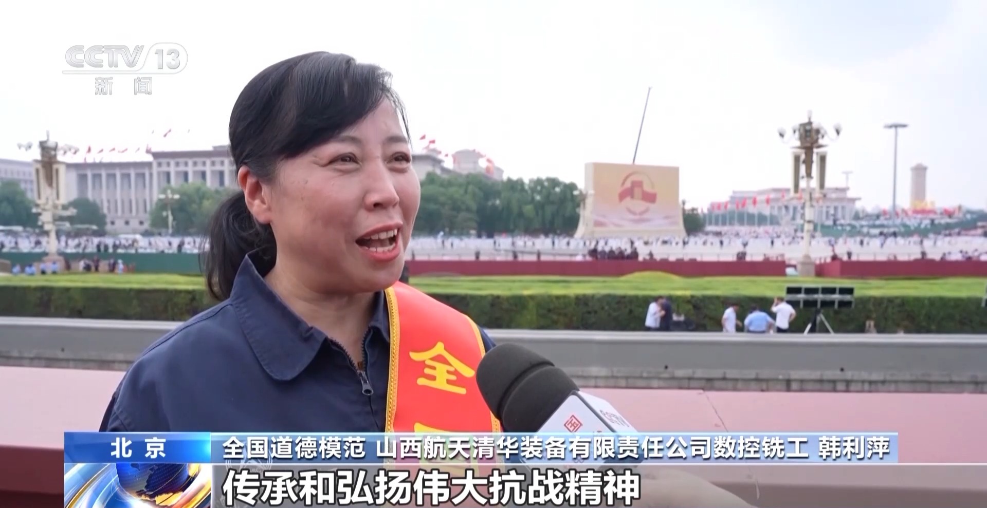 全国道德模范、山西航天清华装备有限责任公司数控铣工 韩利萍:传承和弘扬伟大抗战精神,这句话对我的触动非常深。我要把忠诚爱国、精益求精、坚韧不拔的精神融入日常工作中,把每一个产品都加工成精品,为航天强国贡献力量。