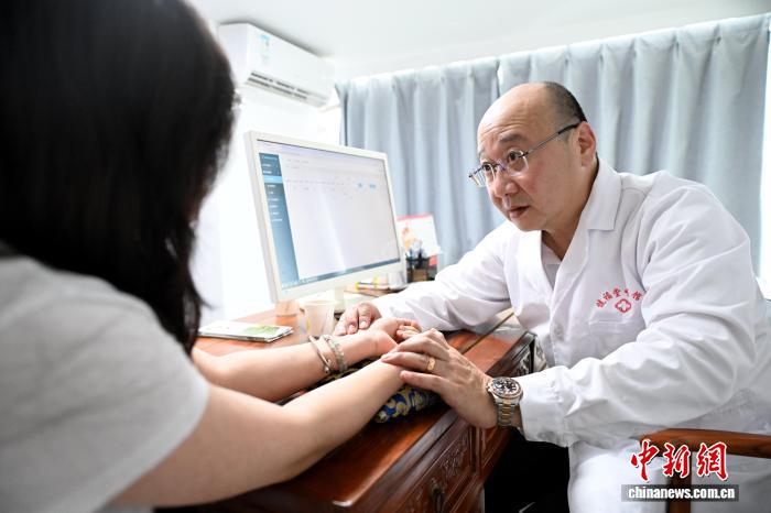图为高嘉骏在福州为患者看诊治病。中新网记者 吕明 摄