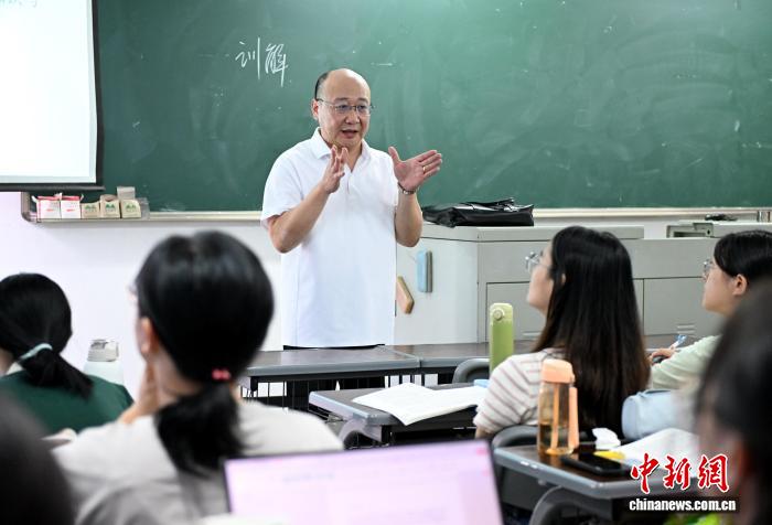 9月9日,在福建中医药大学屏山校区,福建中医药大学台湾教师高嘉骏(中)正在给学生上课。中新网记者 吕明 摄