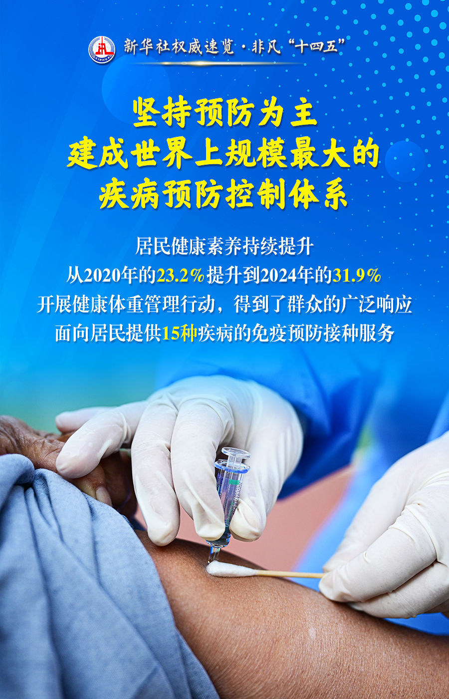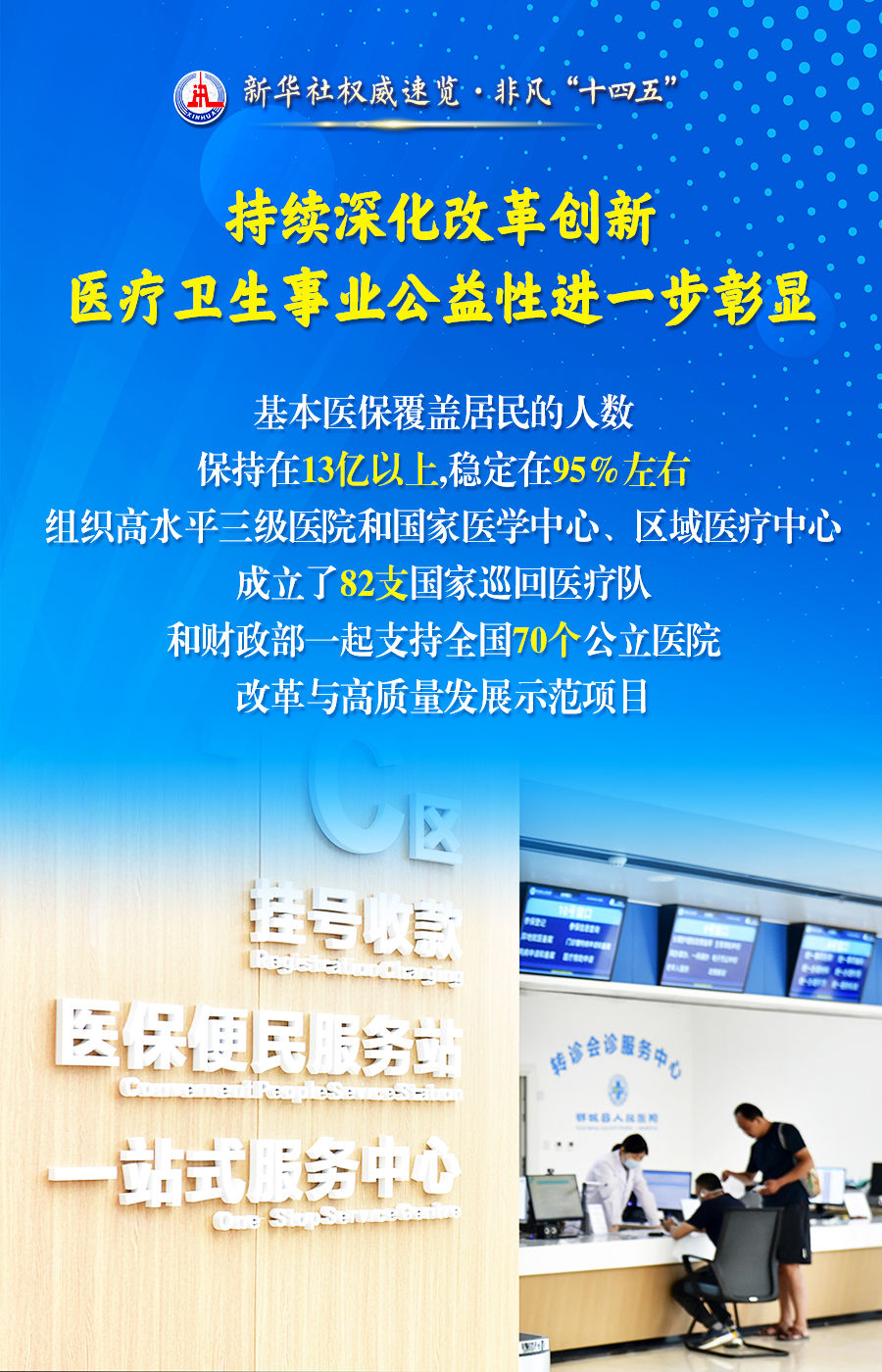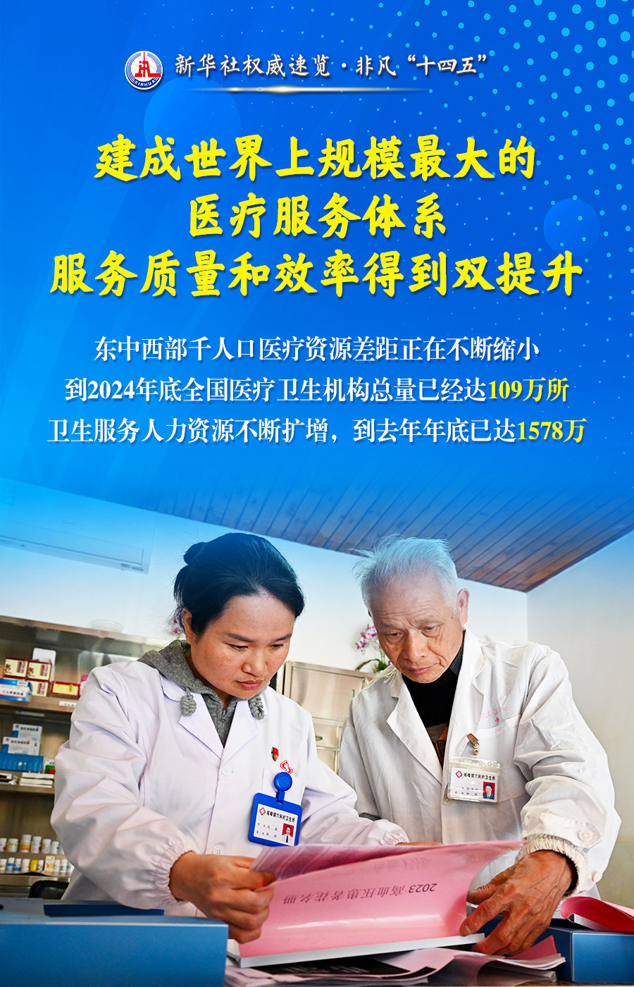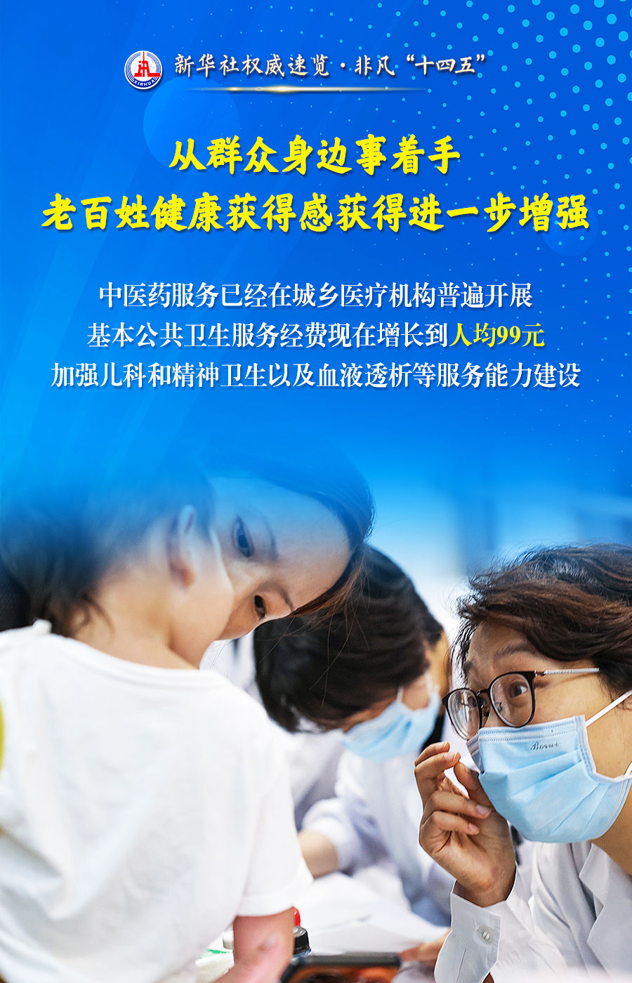 国务院新闻办公室11日举行“高质量完成‘十四五’规划”新闻发布会。国家卫生健康委主任雷海潮说,“十四五”时期卫生健康工作度过了极不平凡的五年。卫生健康服务的能力水平、可及性、公平性都得到了持续改善和提升,特别是人民群众所看重的健康水平也得到了持续地改善。通过这组海报,一起了解。