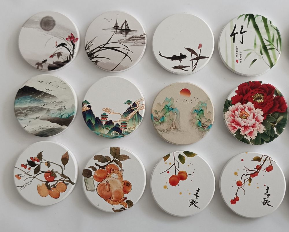 三班镇一家陶瓷企业设计的国风陶瓷杯垫。新华社发
