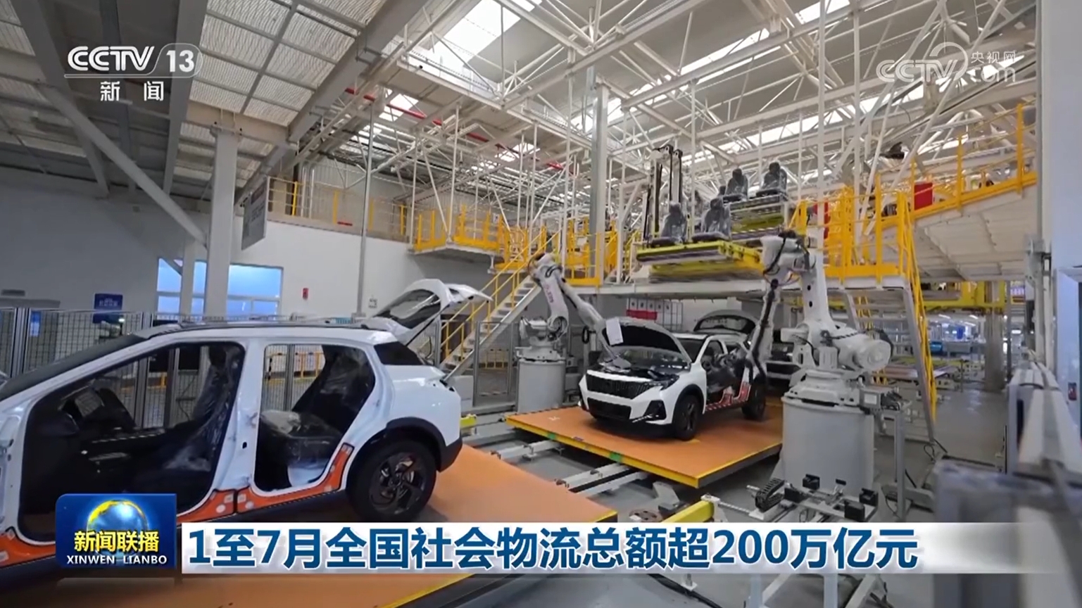 央视网消息(新闻联播):记者从中国物流与采购联合会了解到,今年1—7月份,全国社会物流总额,即物流运行中的实物商品价值总和为201.9万亿元,同比增长5.2%。物流运行延续稳中有进的发展态势。