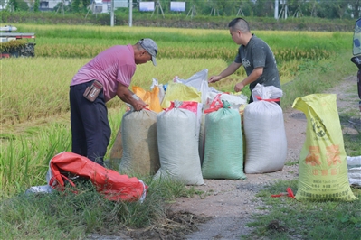 ◀眼下,水稻陆续进入成熟收割期。在屯溪区奕棋镇瑶干村兴瑶农业专业合作社的稻田里,村民们正紧抓晴好天气开镰采收,预计9月中旬迎来大面积收割。 吴蓉 程爱女 查永忠/摄