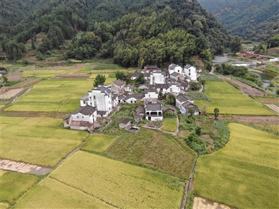 ▲金秋九月,休宁县板桥乡呈村宛如一幅绚丽的画卷,美不胜收。金黄的稻田在阳光照耀下,恰似一片金色的海洋。风吹麦浪,波涛翻滚,处处洋溢着丰收的喜悦。 汪建国/摄