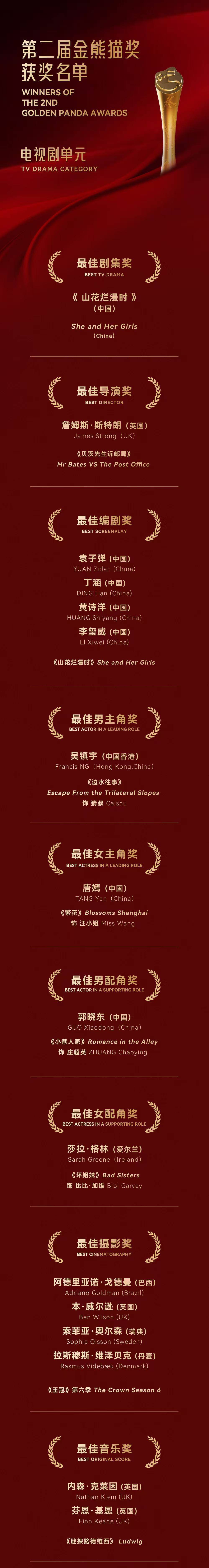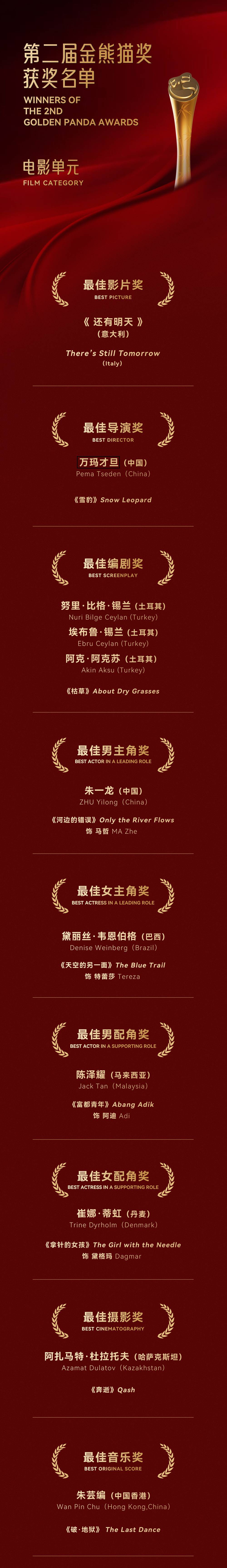 9月13日,第二届金熊猫奖的压轴大戏——金熊猫盛典在四川成都举行,27个奖项逐一揭晓。完整获奖名单公布↓↓↓