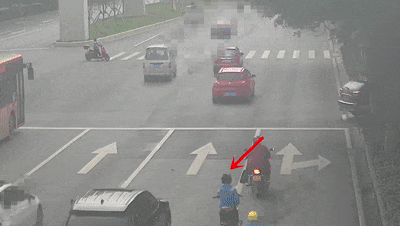 近日,上海一名女子骑自行车边转弯边横穿马路,与一辆慢速行驶的车辆发生碰撞,女子倒地受伤。
