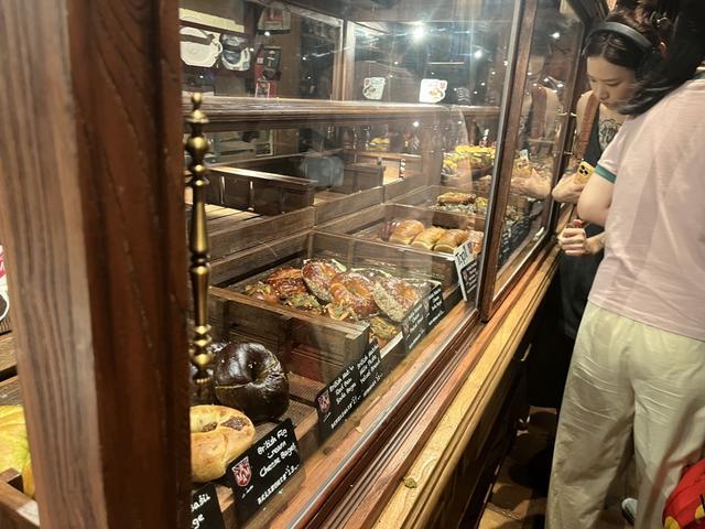工作日的20:30,五角场商圈的合生汇人流如织。在B1层的趁热集合,店内有二三十位顾客正在选购面包,收银台、试吃桌前都排着队。记者在店里转了一圈,面包数量真不少。店中央的大玻璃柜里,摆放着6托盘的“奶酪核桃马卡龙”,每盘都有15个。旁边货柜里有八九十只不同口味的贝果,约30个大吐司,还有约100只花色面包。