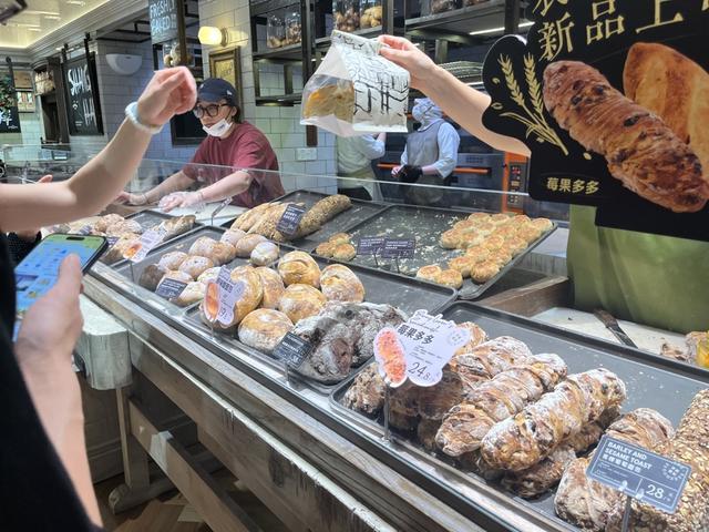 顾客在店内选购面包