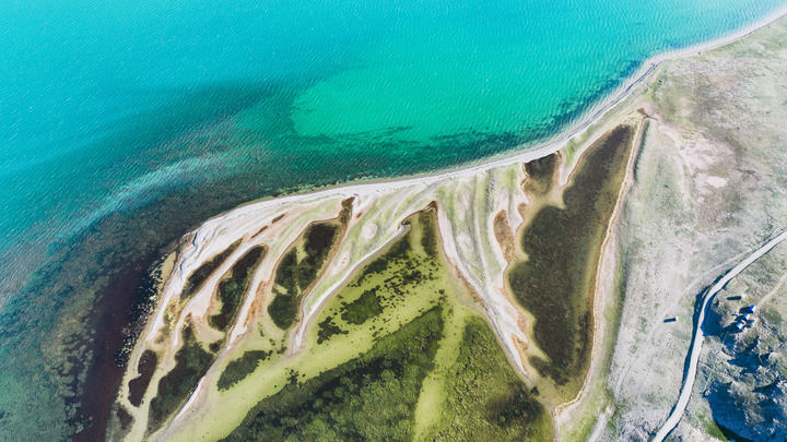 2020年7月5日,黄河源头的扎陵湖水面翠蓝。北岸,一支科考队伍打破荒原的宁静。