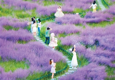 广西壮族自治区南宁园博园景区,粉黛乱子草盛情绽放,吸引了许多游客前来打卡拍照。曾祥忠摄(人民图片)