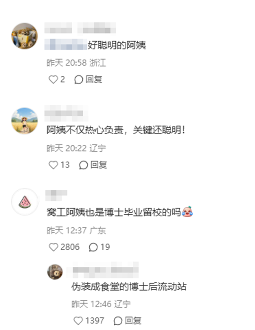 记者了解到,故事的主人公是大连理工大学博留食堂的杨阿姨(化名)。