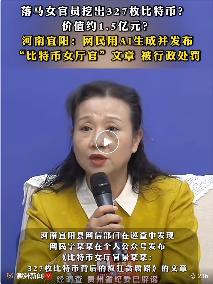 近日,河南宜阳县网信部门在巡查中发现,网民宁某某在个人公众号发布《比特币女厅官景某某:327枚比特币背后的疯狂贪腐路》的文章。经调查,贵州省纪委已辟谣,该文章系AI工具生成,未经核实发布不实信息。网信部门联合属地公安部门迅速开展处置工作,宁某某对违法行为供认不讳,公安机关依法对其予以行政处罚。
