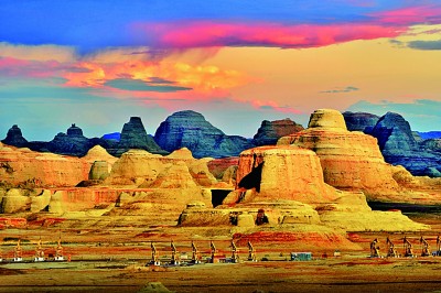 新疆克拉玛依市乌尔禾区世界魔鬼城的“磕头机”森林。克拉玛依市委宣传部供图