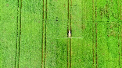 俯瞰新疆生产建设兵团第一师阿拉尔市花桥镇棉花产区。本报记者孙金行摄