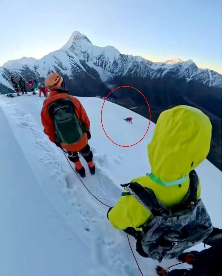 经初查,男子滑坠的原因是:他给同行游客拍照时解开了安全绳,站起来时被冰爪绊倒,随后滑坠两百余米,坠落到海拔5300米左右的地方。