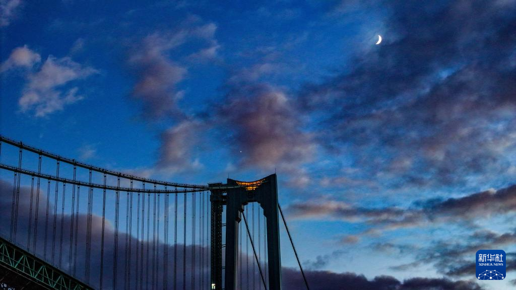 9月27日拍摄的月色下的贵州花江峡谷大桥(无人机照片)。 新华社记者 欧东衢 摄