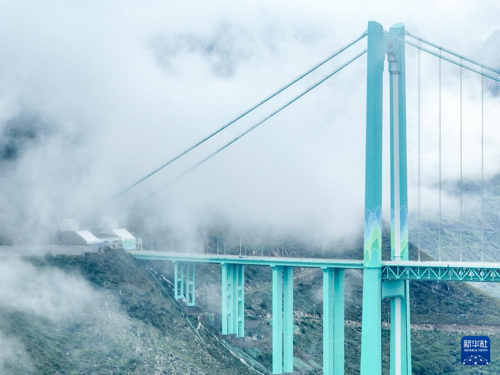 9月26日拍摄的云雾中的贵州花江峡谷大桥(无人机照片)。 新华社记者 欧东衢 摄