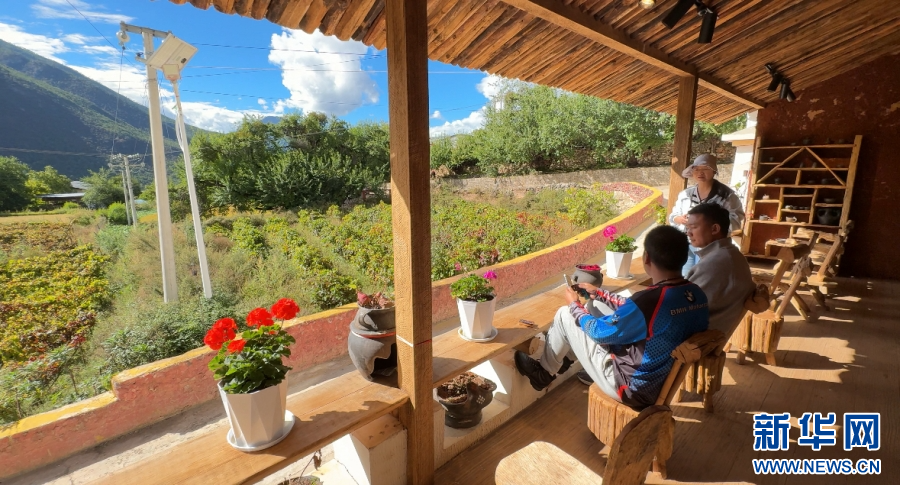 游客在汤堆村游览(9月28日摄)。新华网发(高晨晨摄)