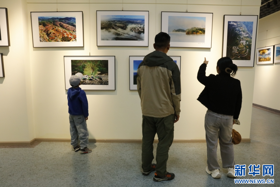 游客在迪庆藏族自治州文化馆观看摄影展(9月27日摄)。新华网发(高晨晨摄)