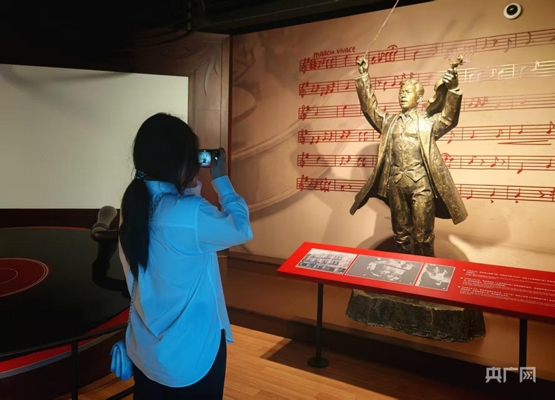 “我家过去就住在这楼上。”老党员施荣贵指着展馆,语气里带着几分自豪。他是国歌展示馆的“老熟人”,拆迁后这里建起展馆,他常回来看看。他说,每次来都能感受到一种沉甸甸的力量。