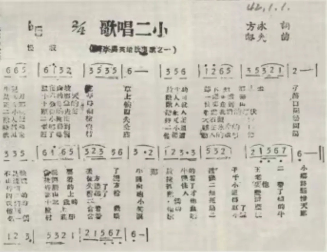 歌曲刊登在《晋察冀日报》上。图自人民日报文艺