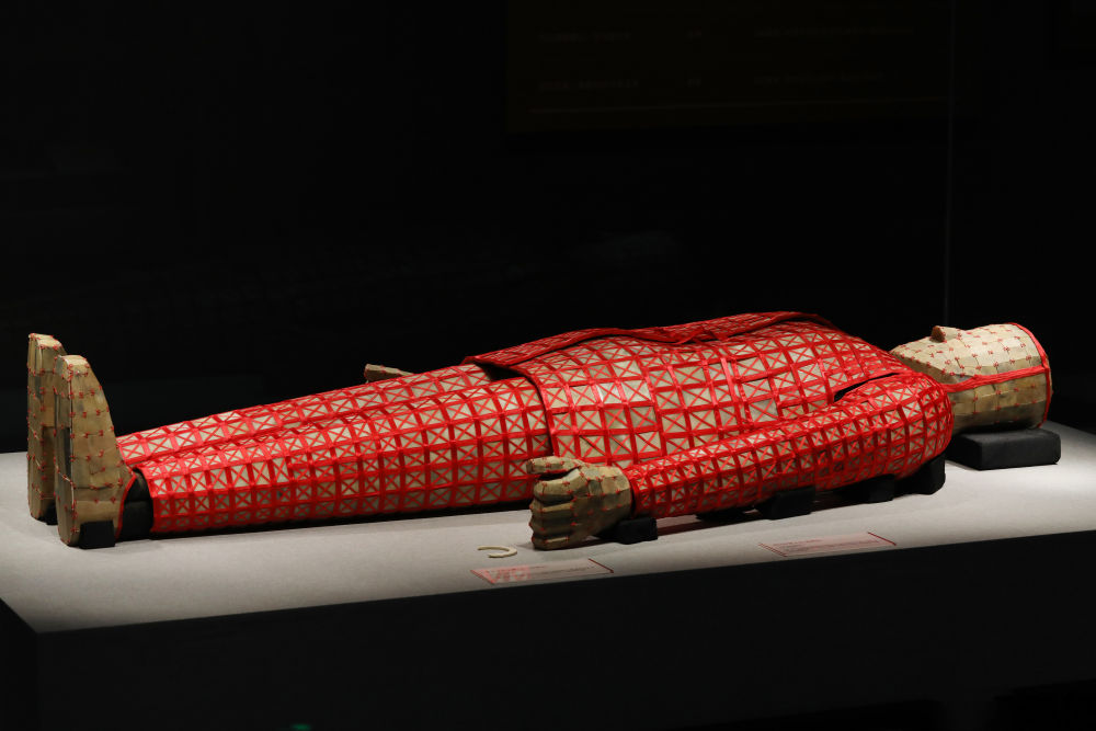图为赵眜墓中出土的丝缕玉衣复制品。新华社记者 袁慧晶 摄