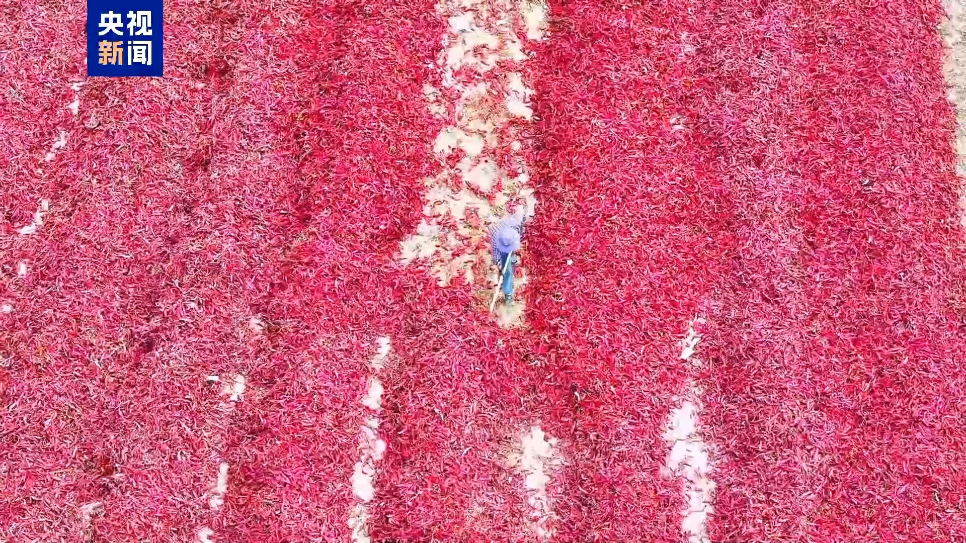 眼下,新疆巴州和硕县的色素辣椒进入集中晾晒加工期。在广袤的戈壁滩上,一块块、一垄垄的红辣椒连成一片进行晾晒,犹如一片片“红色地毯”。当地种植户正忙着将晾晒好的辣椒进行打包、装车,运送到加工厂进行加工。和硕县光照时间长,昼夜温差大,独特的光热水土资源孕育出高品质辣椒。