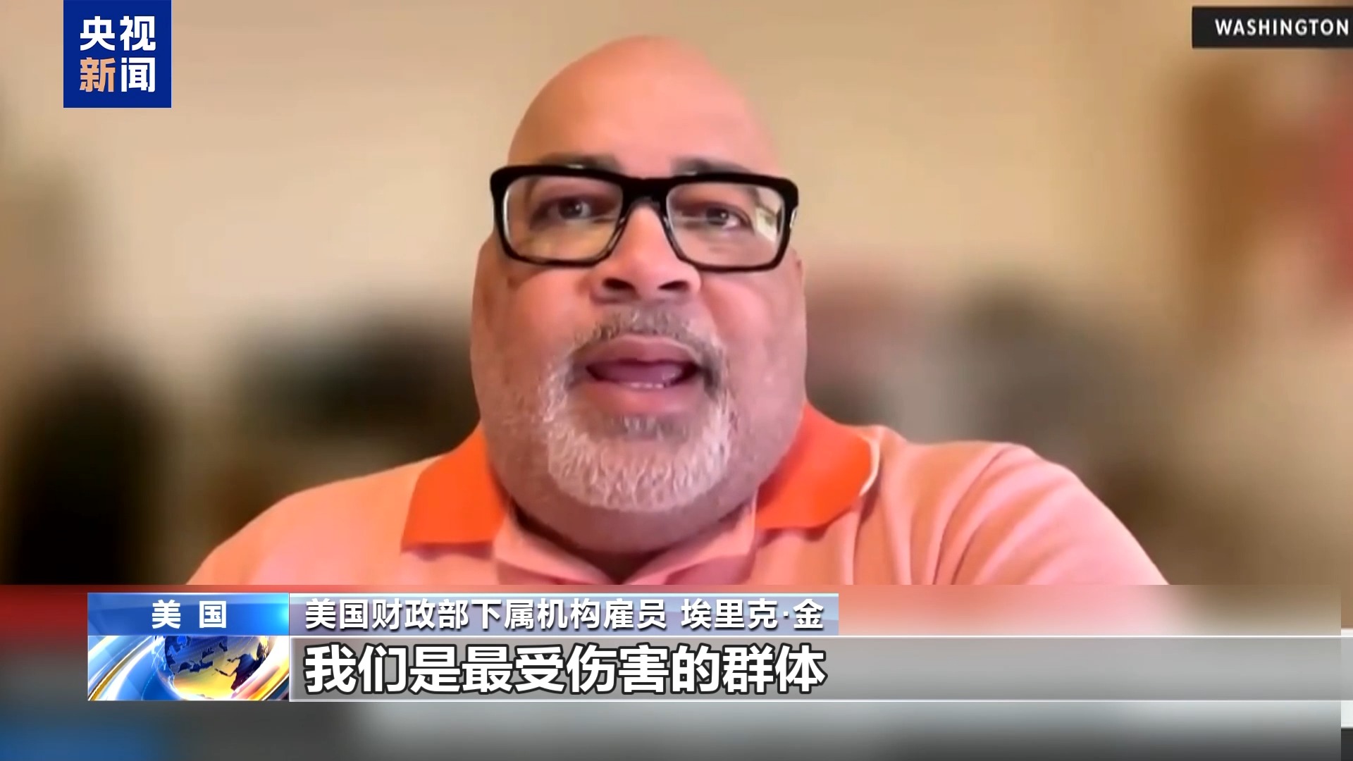 美国财政部下属机构雇员 埃里克·金:我觉得,处于这种政治上的反复中,像我一样的联邦雇员,我们是最受伤害的群体。“停摆”时间越长,可以确定的是,这越会伤害那些为美国公众服务的雇员,也就是我们自己。