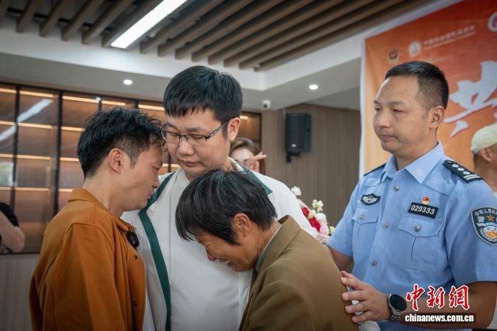 中新网绵阳10月13日电 (杨勇)“妈,哥,我想你们!”10月13日,四川省绵阳市公安局刑侦支队内,72岁的母亲刘国荣颤抖着抚摸儿子崔元茂的脸庞,身旁的大哥陈邦华则紧紧搂住失散36年的弟弟崔元茂。三人相拥而泣的画面,让“绵阳公安2025常态化反拐团圆行动”第35场认亲仪式现场众人动容。崔元茂正是1989年在陕西安康失踪的4岁男童陈邦力,如今他定居山东青岛。当天,被拐36年的崔元茂,终于与亲生母亲刘国荣、大哥陈邦华实现了离散后的首次正式相见。