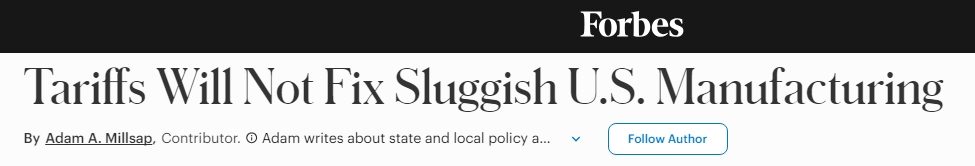 文章强调,必须拿出切实证据表明关税确实有利于美国制造业,而目前的证据均指向相反结论。关税以价格上涨和选择减少的形式,将巨额成本转嫁给美国消费者与企业。如果特朗普政府真心想扶持美国制造商,就应专注在能提高生产率的改革上,而非一味依赖关税。