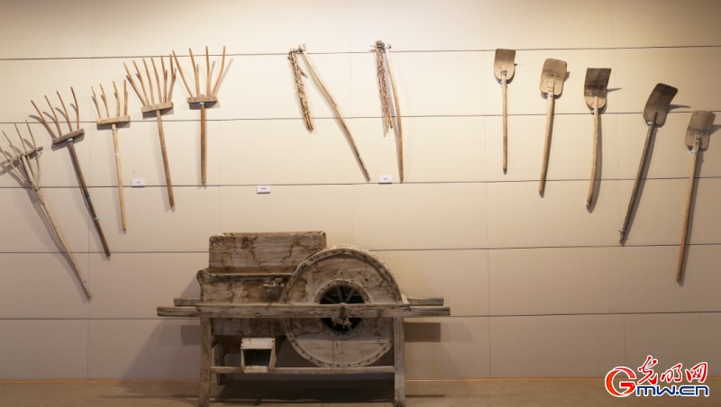 南泥湾大生产纪念馆内展出的大生产运动的农具。