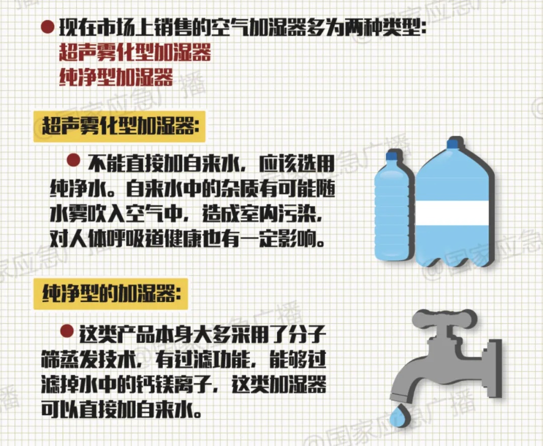 应定时清洗加湿器,谨防霉菌、病毒滋生,污染空气,引起加湿器肺炎。