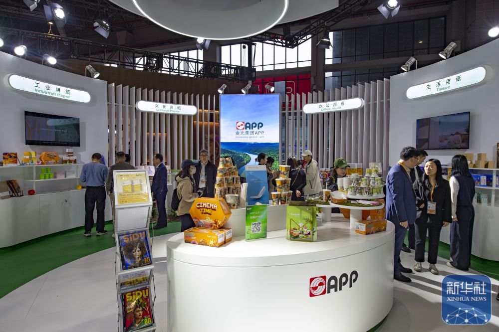 ↑ 11月7日在第八届进博会消费品展区拍摄的印度尼西亚金光集团展台。新华社记者 丁赫 摄