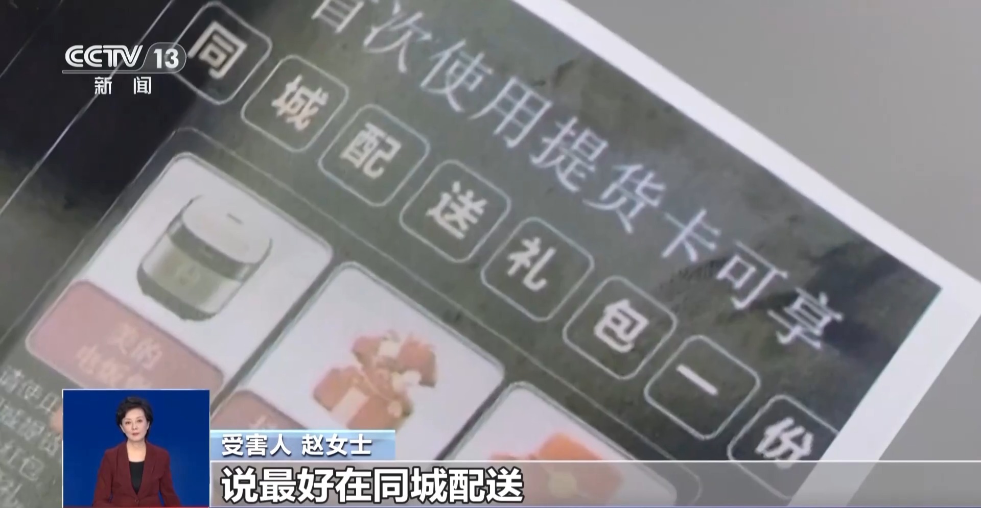 受害人赵女士:我看了一下提货卡,上面写着,你这个是生鲜产品,说最好在同城配送,因为我想快点收到货,所以扫码下载了软件。