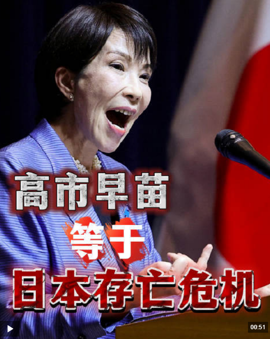 日本龙谷大学教授松岛泰胜表示,高市早苗的言论带有军国主义色彩,正使日本陷入危机,高市早苗政权的存在就是日本的“存亡危机”。