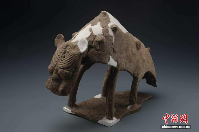 图为出土的镇墓兽。 咸阳市文物考古研究所供图