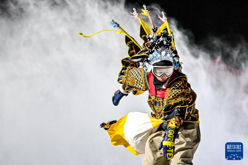 2025年2月10日,在第九届亚冬会自由式滑雪空中技巧混合团体决赛中,中国队夺冠。这是齐广璞在比赛中。新华社记者李尕摄