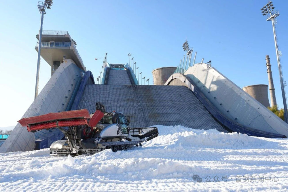 图为正在造雪的北京首钢滑雪大跳台。图片来自首钢新闻中心