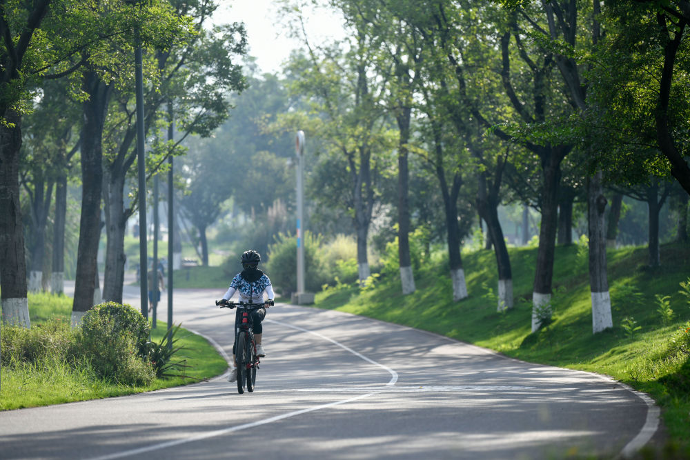 市民在成都天府绿道骑行(2023年7月16日摄)。新华社记者 胥冰洁 摄