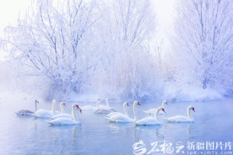 在伊犁的天鹅泉,冬日则是另一番温暖景象。即便气温低至零下二三十摄氏度,这里的湖水却始终不冻,雾气氤氲如仙境。每年冬季,成群的疣鼻天鹅会如期而至,它们洁白的羽毛在雾气中若隐若现,修长的脖颈优雅地弯曲,时而在水中嬉戏,激起层层涟漪,时而展翅盘旋,掠过水面的瞬间,十分灵动可爱。