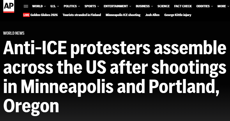 美联社网站11日的报道称,在明尼阿波利斯市和俄勒冈州波特兰市发生涉及联邦执法人员的枪击事件后,反对移民与海关执法局(ICE)的抗议者在美国各地集会。本周末的抗议活动预计将有成百上千起。
