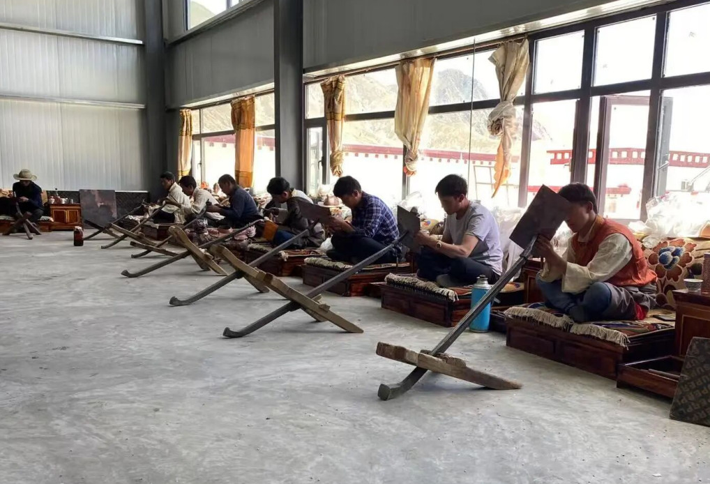 在南木林县艾玛乡孜东雪村铜器加工厂,锤声叮当——国家级传承人列旦桑布正带年轻人接力技艺。他自幼痴迷铜器,师从外祖父(第五代传承人赞拉多吉),24岁便精通全流程工艺,至今已培养28名徒弟。“我们守传统精髓,也顺市场需求。”列旦桑布说,孜东铜器全手工制作,涵盖制模、雕刻等十余环节,既保留宗教用品传统,更开发生活用品、旅游纪念品,他还曾参与罗布林卡、西藏博物馆文物修复,足迹遍及藏 区及青海、四川等地。