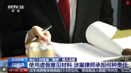 中国政法大学教授 谭秋桂:通过AI搜索到的材料,它的真实性,它是属于民诉法规定的诚信原则的调整范围,来源要讲清楚,你不能说本来是自己用AI生成的,你说是自己调取的。对于案件甄别和核实的责任,在于诉讼参与人自己,如果不真实,有虚假成分或者是虚假的,相应的主体,就是提供者,还要承担相应的法律责任。