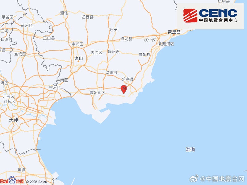 央视网消息:中国地震台网正式测定,1月25日18时18分在河北唐山市乐亭县(北纬39.28度,东经118.86度)发生2.4级地震,震源深度15千米。