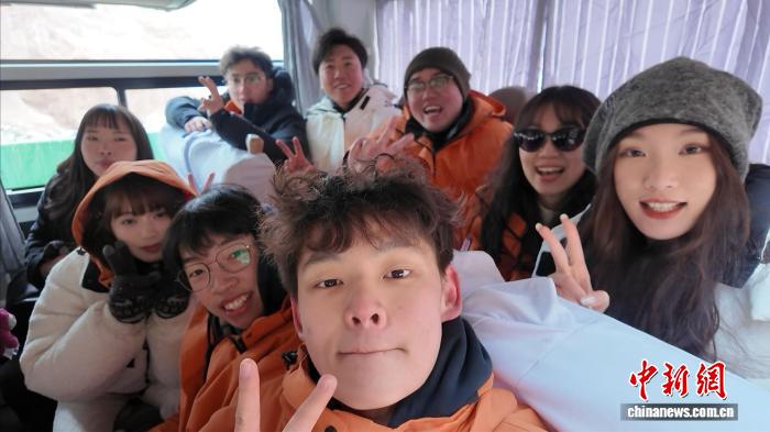 2026年1月24日,全国台联第三十二届台胞青年冬令营甘肃分营中的两岸青年在行程中自拍合影。受访者供图