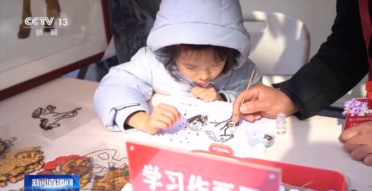 居民 黄吉凤:非常热闹,这里有吃的、用的、玩的,孩子们做游戏,还有春联,带孩子一起玩,小孙子玩得很开心,已经感受到过年的年味了。